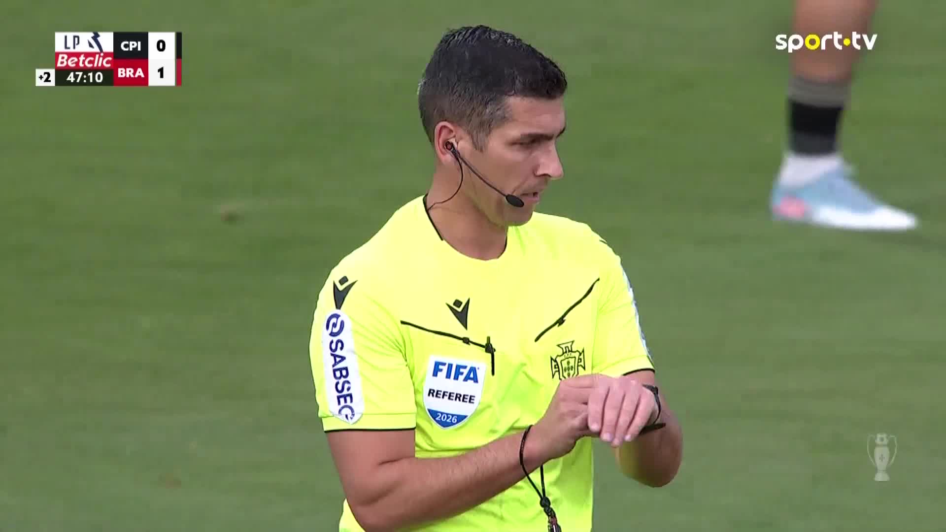 Começo da segunda parte Casa Pia 0, Braga 1.